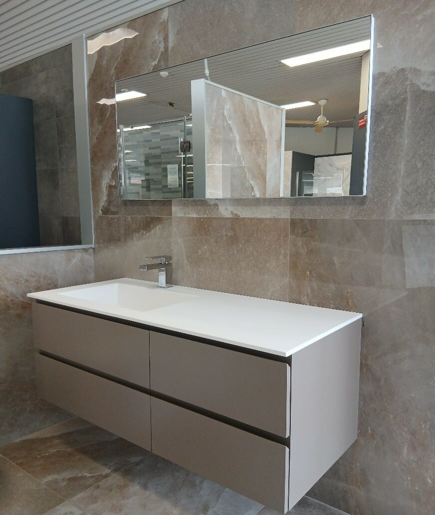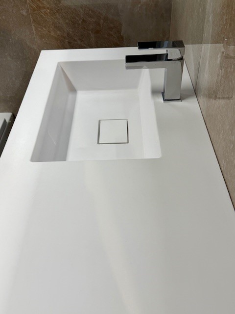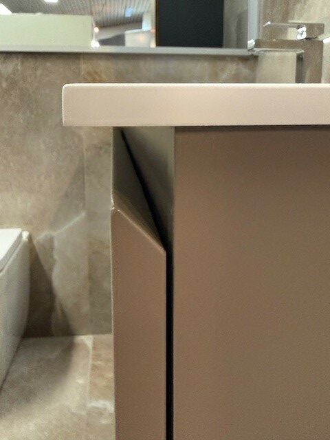 Mobile in melaminico colore cielo con una base portalavabo L85x50 h 24,5 con consolle BENT in tekno bianco opaco L 86×51 + base Join L 70×50 h 24,5.