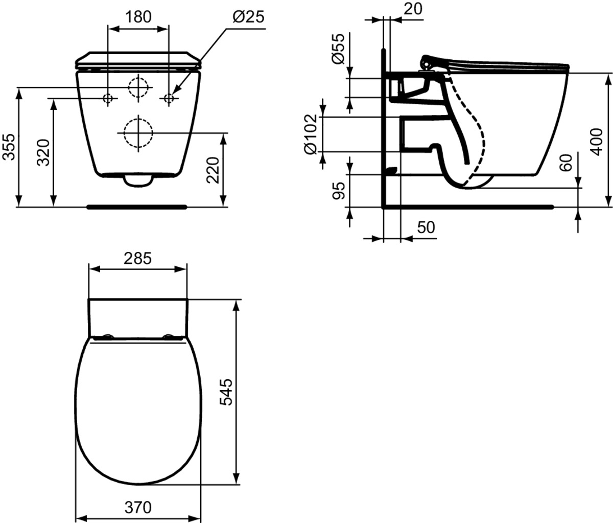 – Vaso sospeso con fissaggi nascosti, con sistema AquaBlade;